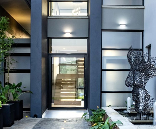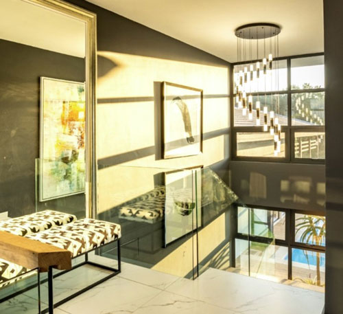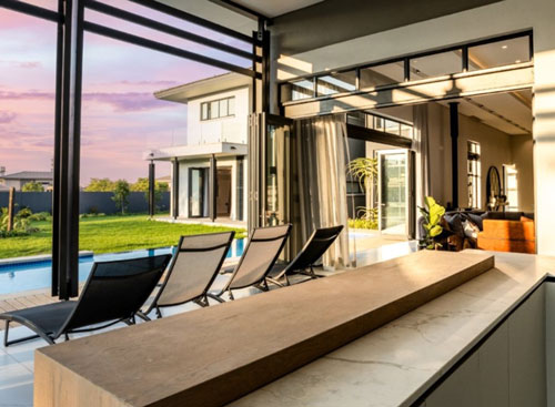 A contemporary and sophisticated interior complements this luxurious home, while the garden is design with indigenous and water-wise planting. Light, subtle and natural colours make the interior spaces a pleasure to be in. The living space boasts a 4,9m high volume, with natural light streaming in from clerestorey windows.